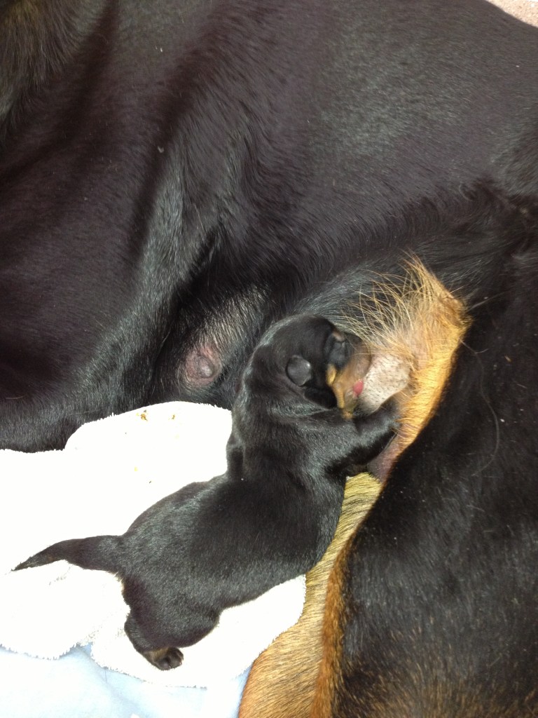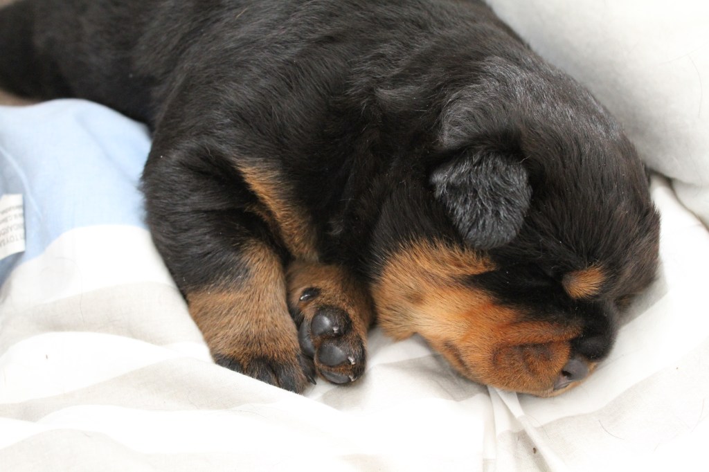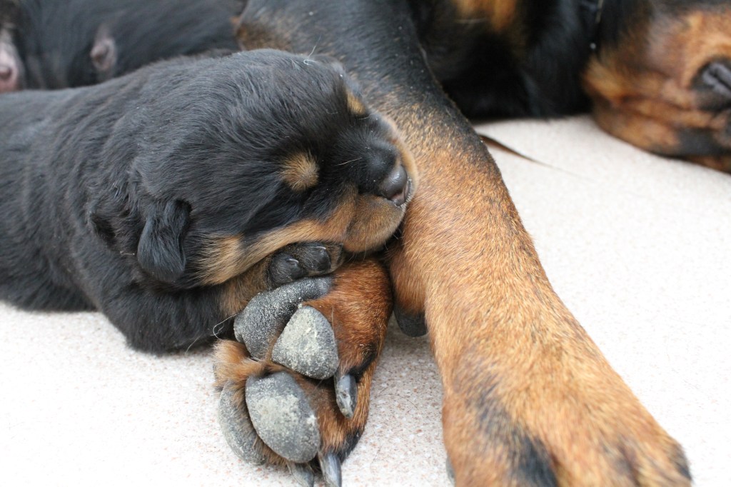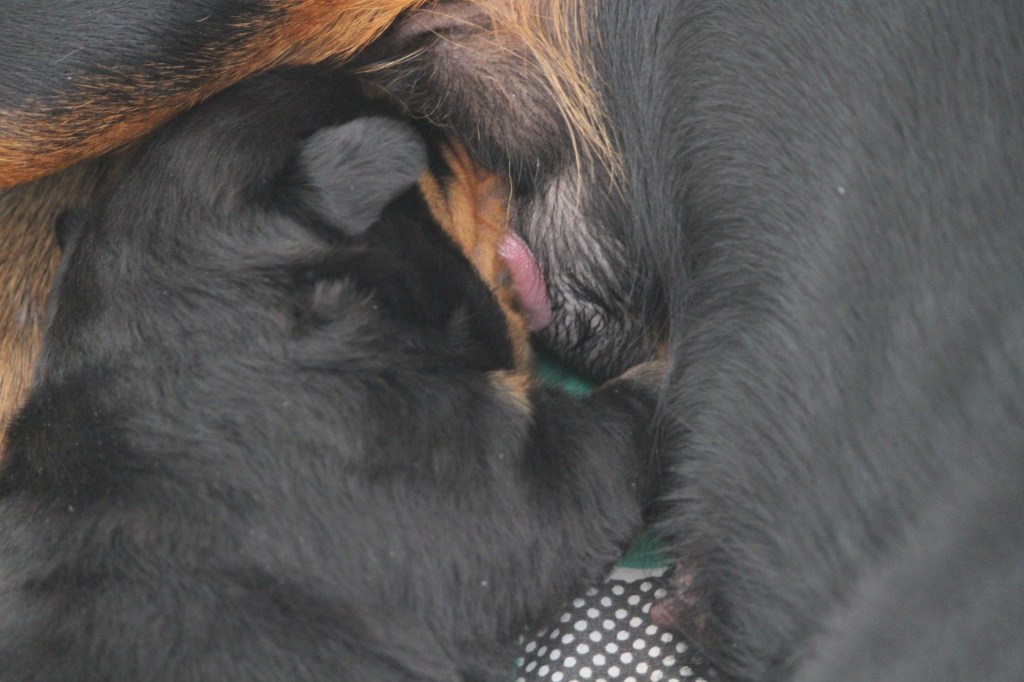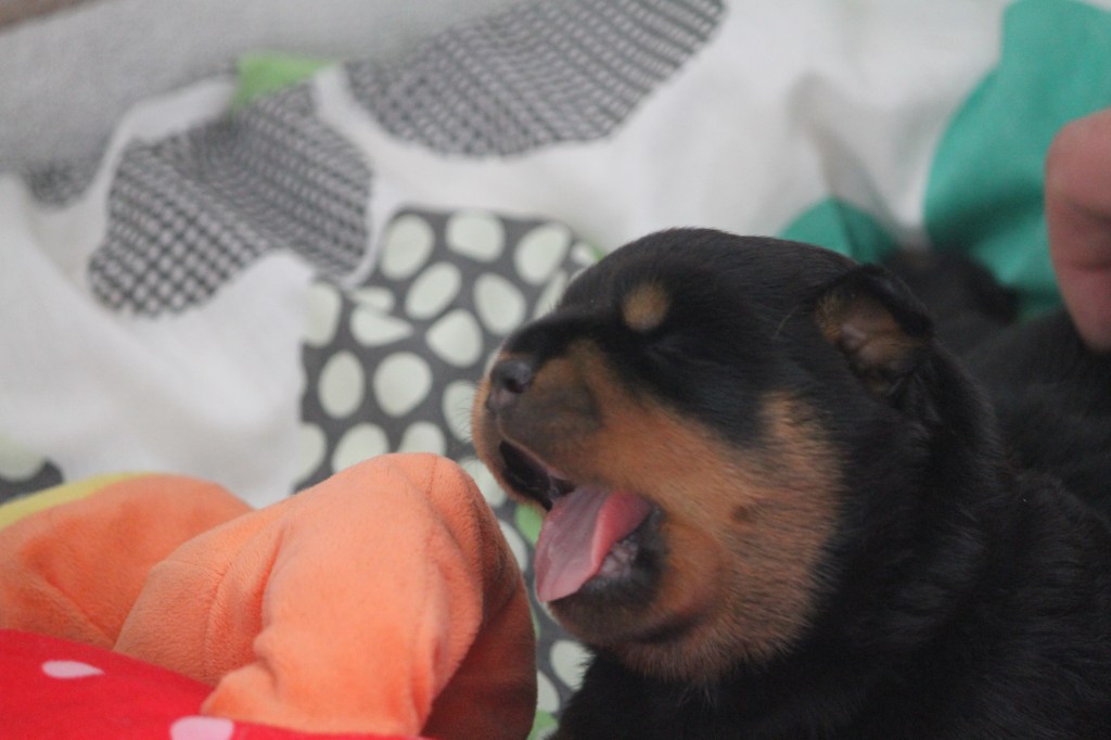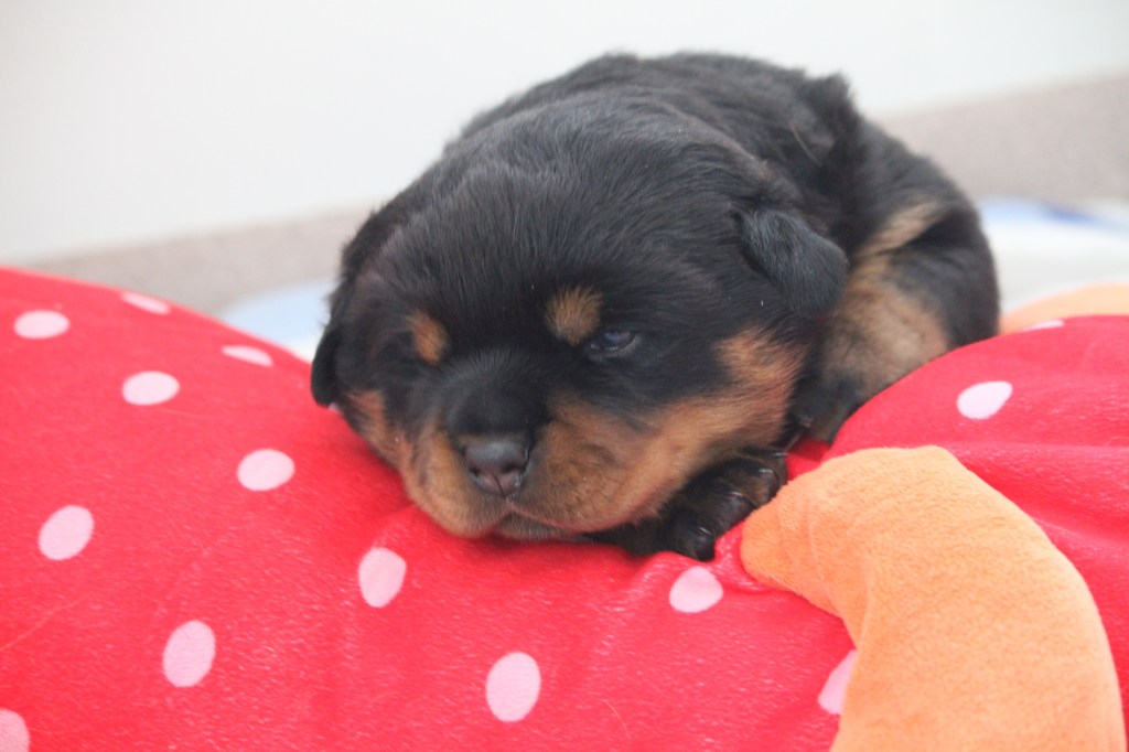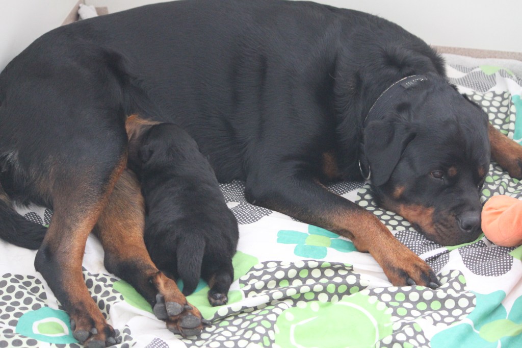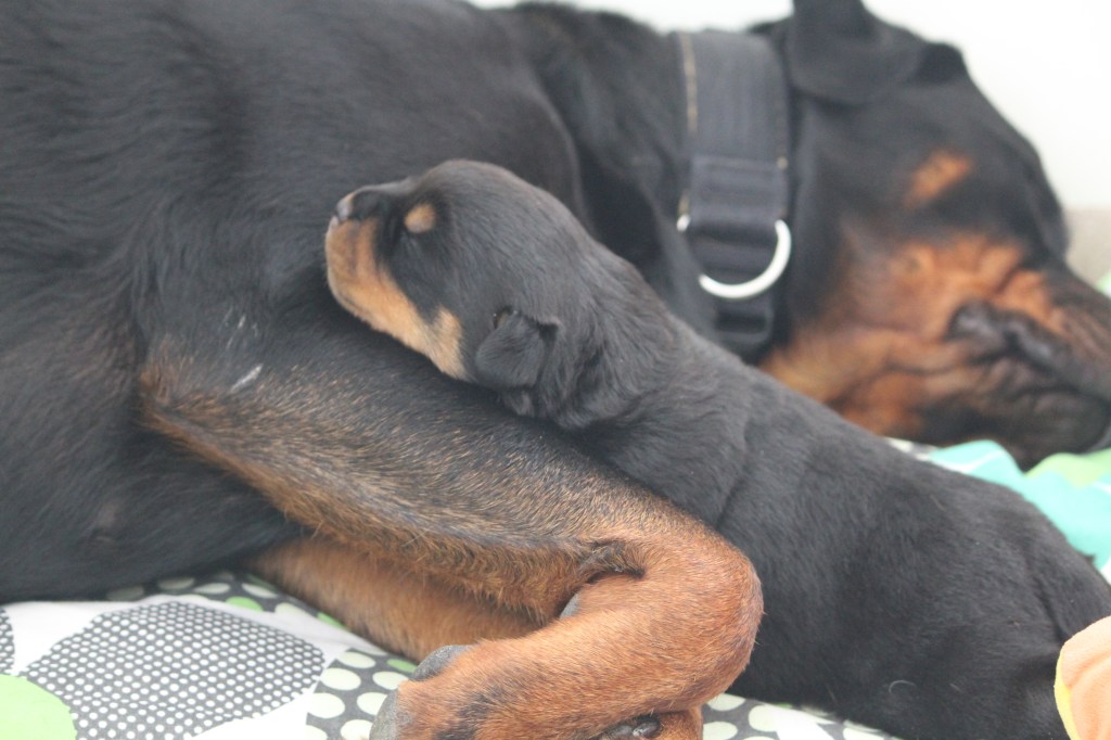 Op 10 juni is Halo of Voyager Rotts bevallen van ons allereerste nestjes. Helaas is ze bevallen van maar 1 pup, een teefje. We zijn erg blij met deze pup en hebben daarom ook besloten deze pup zelf aan te houden.