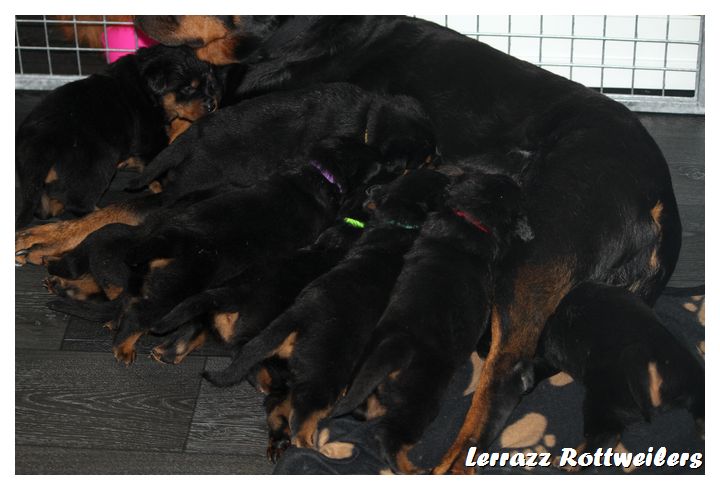 Op 7 augustus is Halo of Voyager Rotts bevallen van 9 prachtige pups. er zijn 3 reuen en 6 teven geboren.