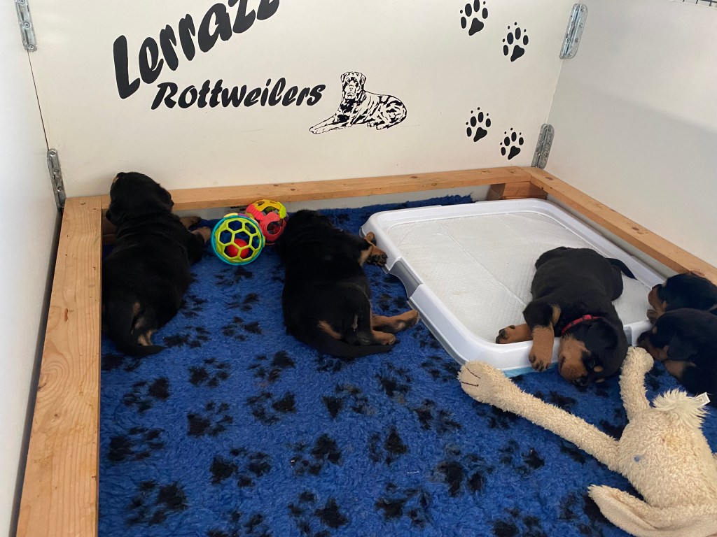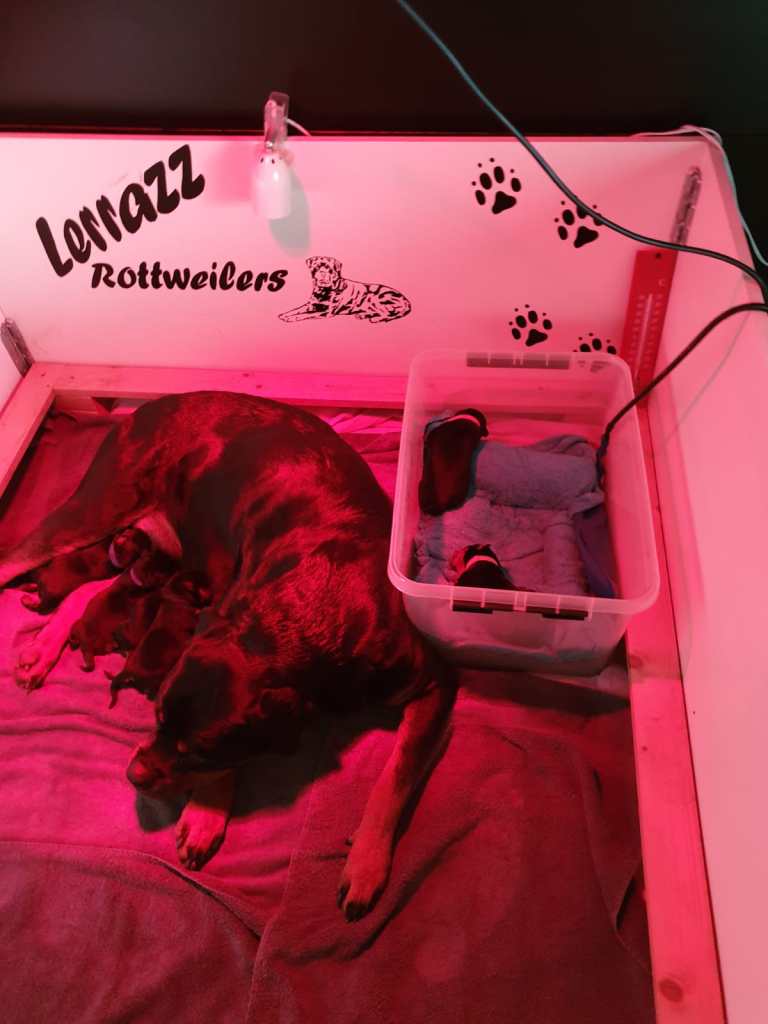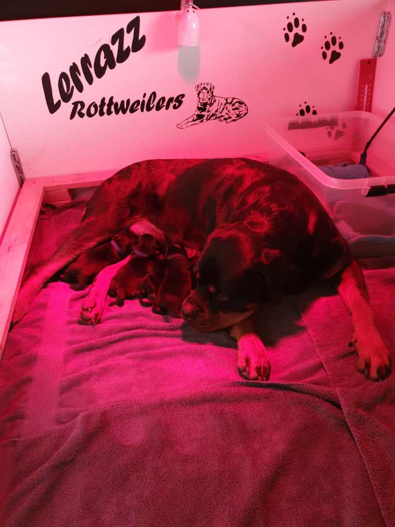 Op woensdag 15 september is Lerrazz Doezel bevallen van 9 prachtige pups. Er zijn 7 reuen en 2 teven geboren. Helaas zijn er 2 reuen dood geboren. Wij hebben zelf lerrazz Fayèn gehouden.