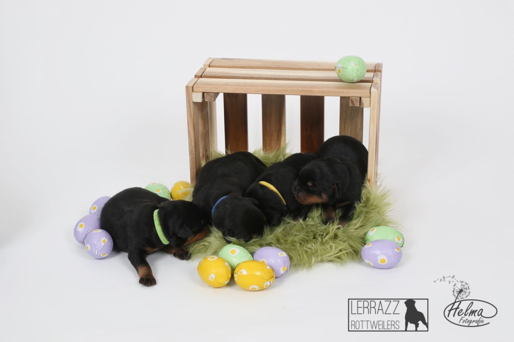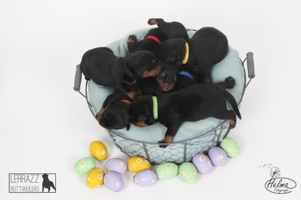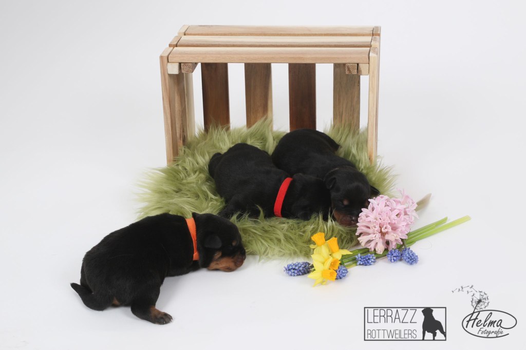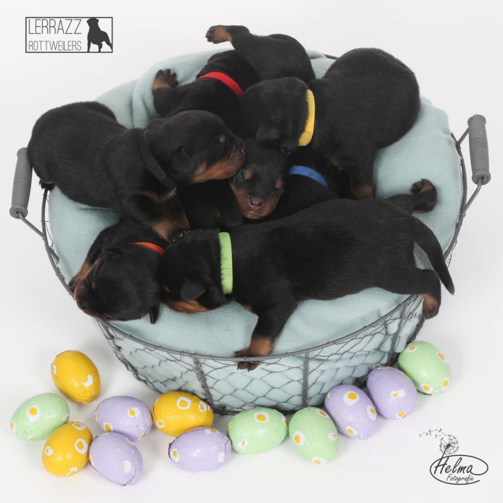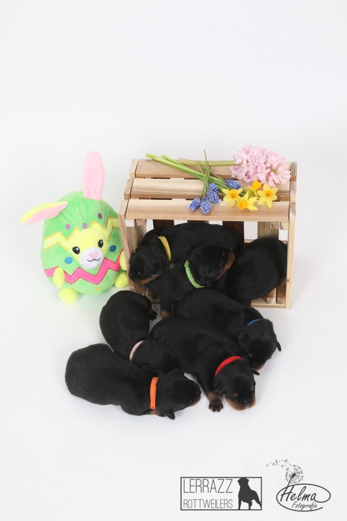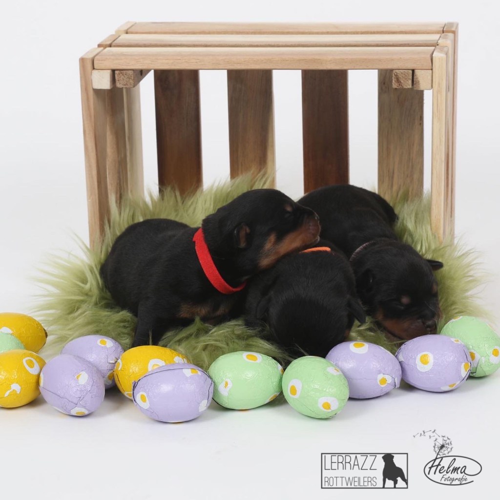 De pups zijn alweer 1 week oud en ze doen het super goed. ze groeien goed en gaan steeds meer bewegen. Met pasen en toen ze 1 week oud warenzijn de pups in de fotostudio geweest voor een fotoshoot.