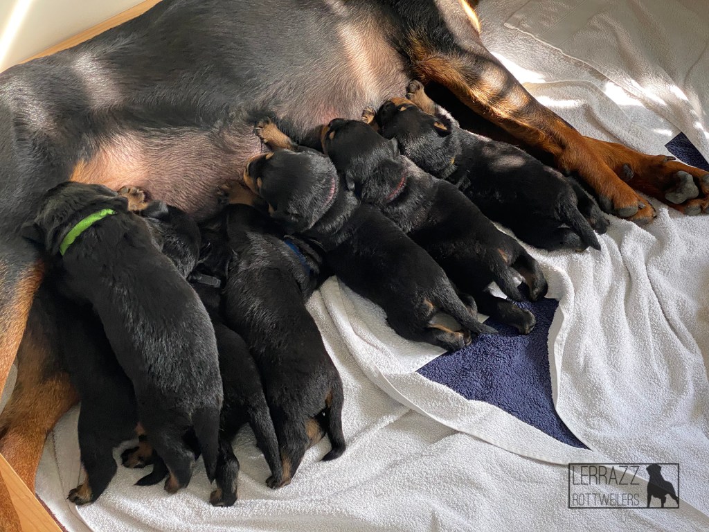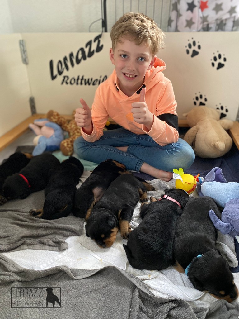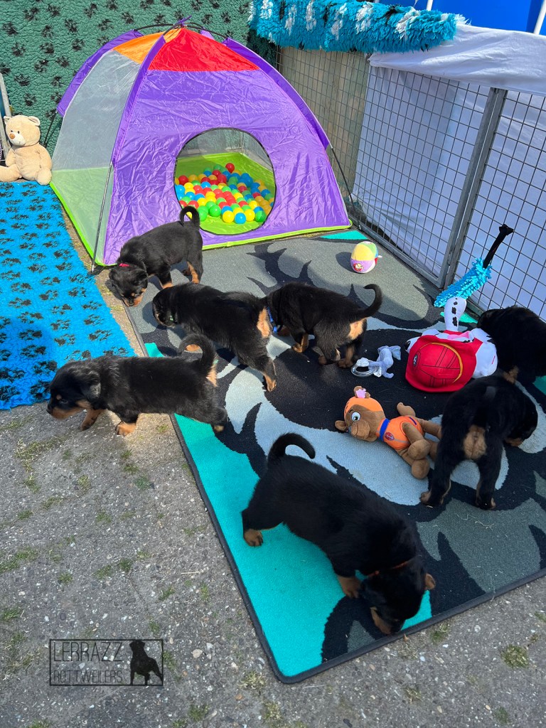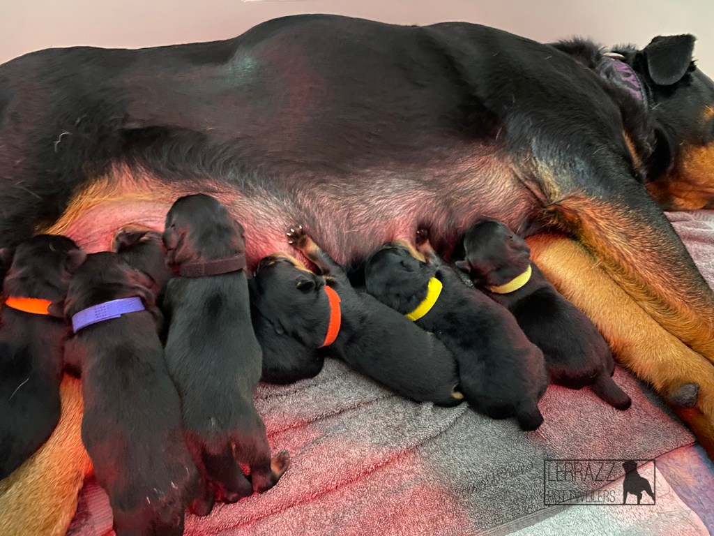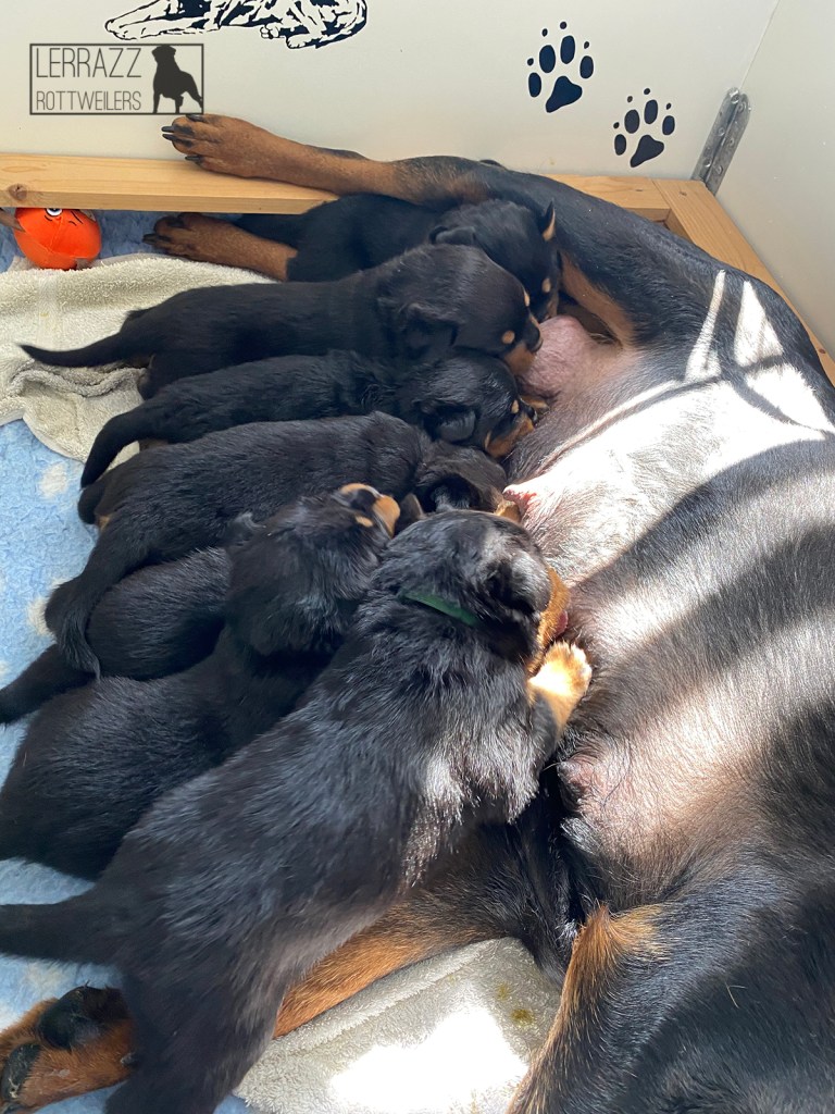 Op donderdag 14 april is Lerrazz Enya bevallen van 8 prachtige pups. Er zijn 4 reuen en 4 teven geboren. Helaas is er 1 teefje tijdens de geboorte overleden. Wij hebben zelf Lerrazz Gigi gehouden.