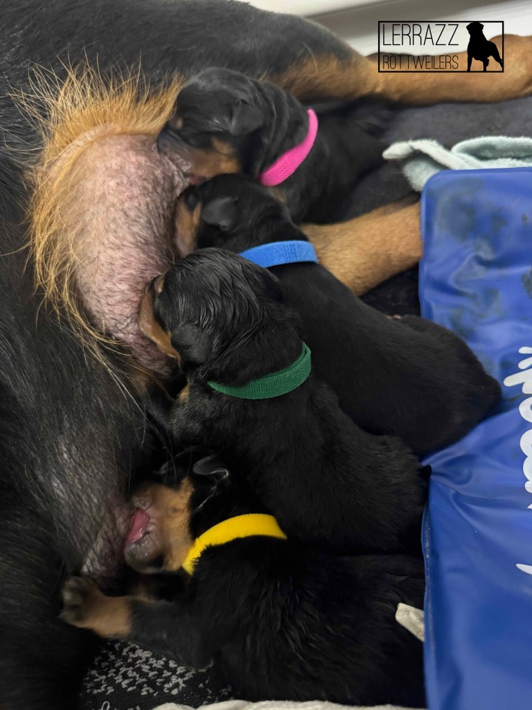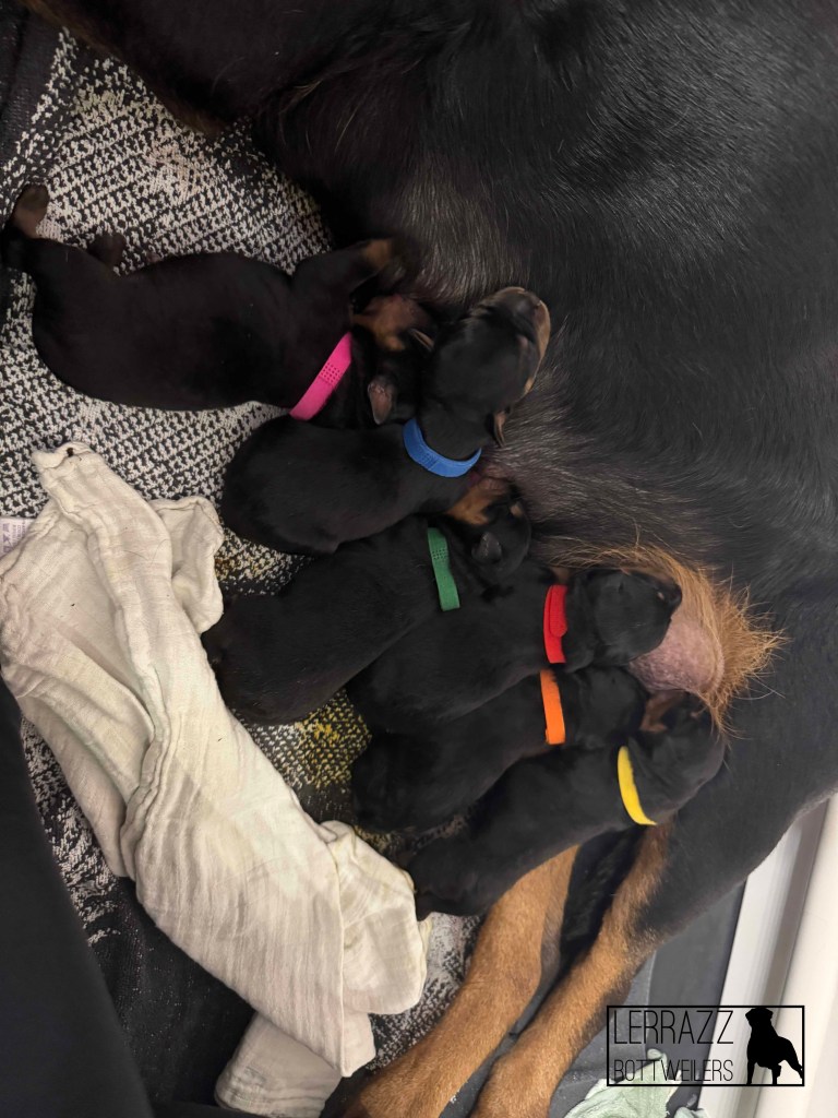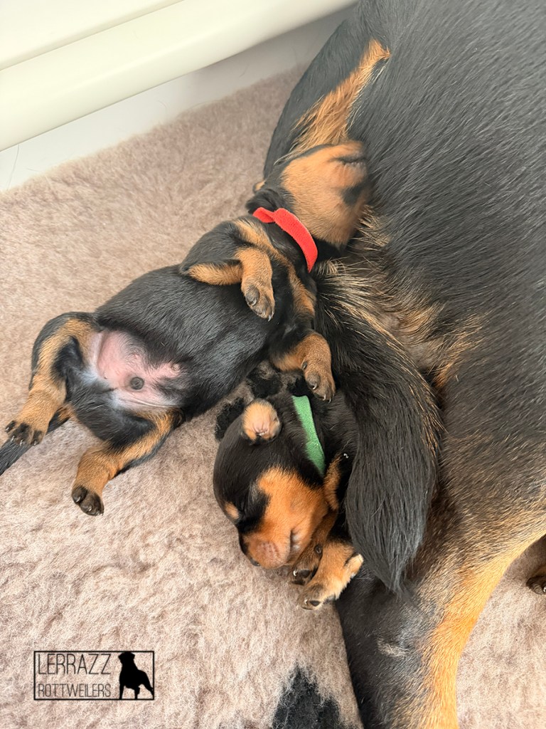 De pups zijn alweer 1 week oud. Wat zijn ze leuk en doen ze het goed. Fayén moest even wennen maar is een super goede moeder.